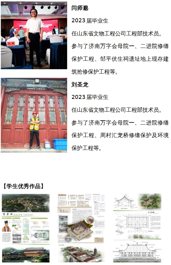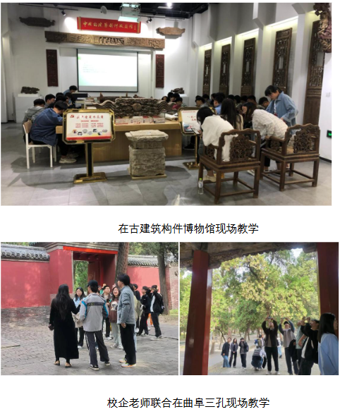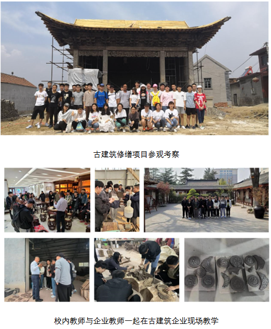 我院与曲阜市园林古建筑工程有限公司、山东省文物工程公司、济南齐鲁园林古建筑工程公司、山东省乡土文化遗产保护工程有限公司等企业深度合作,共同制订人才培养方案,实现专业建设与古建筑修缮、设计、施工产业的精准对接。