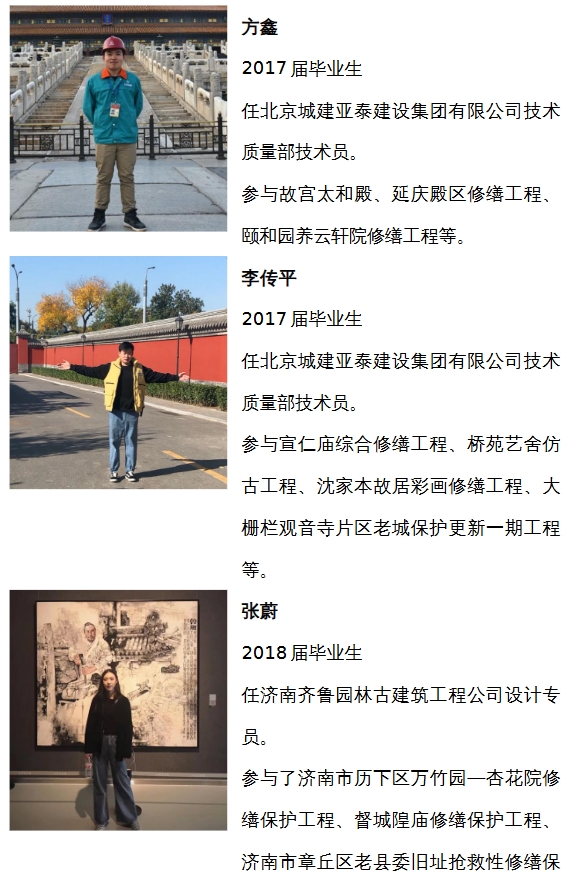 古建筑工程技术专业毕业生综合素质高,就业质量高,发展前景广,毕业后可在岗位上成长为古建筑设计师、古建筑施工技术员和项目经理等。