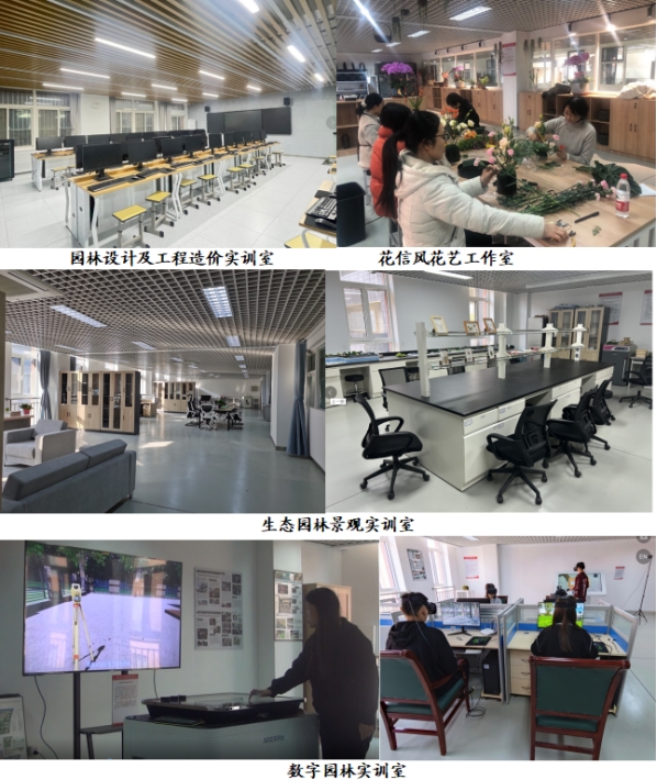 专业现有数字园林实训室、园林设计及工程造价实训室、生态园林景观实训室、花信风插花实训室、园林工程实操区、园林工程材料展示室等校内实训场所,还与省内外多家园林企业建立了稳定的校外实习实训基地,充分满足专业核心课程的教学和技能实训环节。
